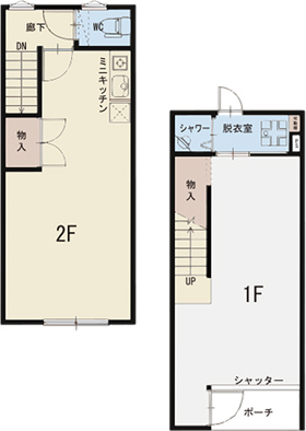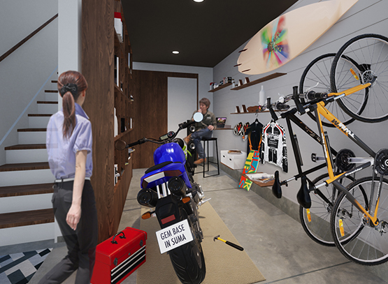 1Fはフリースペースになっているのでバイクいじりができたり、アウトドア用品の収納もできる!